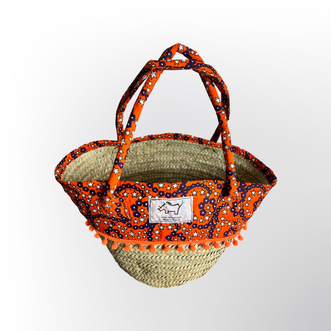 Small Pom Pom Baskets. Made to make a day out fun fit all you need into the basket ,if it's shopping or a day trip out with will carry all you need over the shoulder padded straps and a steady hand woven raffia basket.